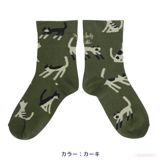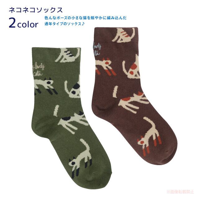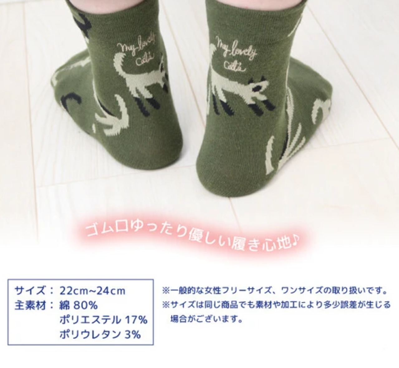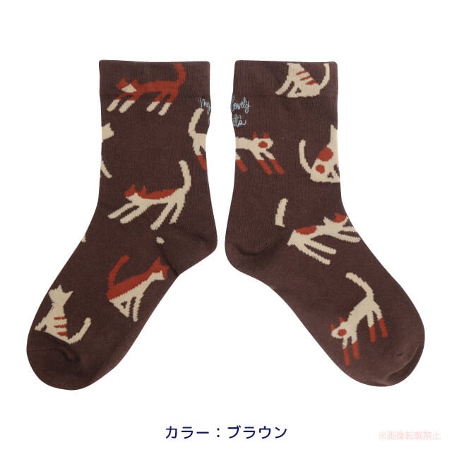 いろんなポーズをしたねこ柄がかわいいソックスです。